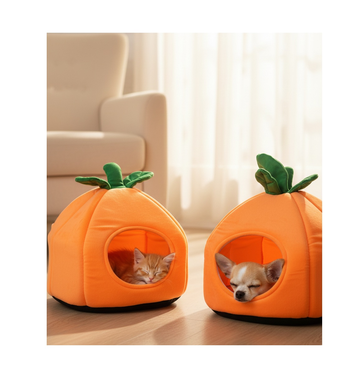 L’espace sommeil Olga orange offre à votre chat un cocon à la fois confortable, ludique et rassurant. Avec son design original en forme de fruit (Orange), il apporte une touche de fantaisie à votre intérieur tout en offrant à votre compagnon un véritable refuge pour se reposer.