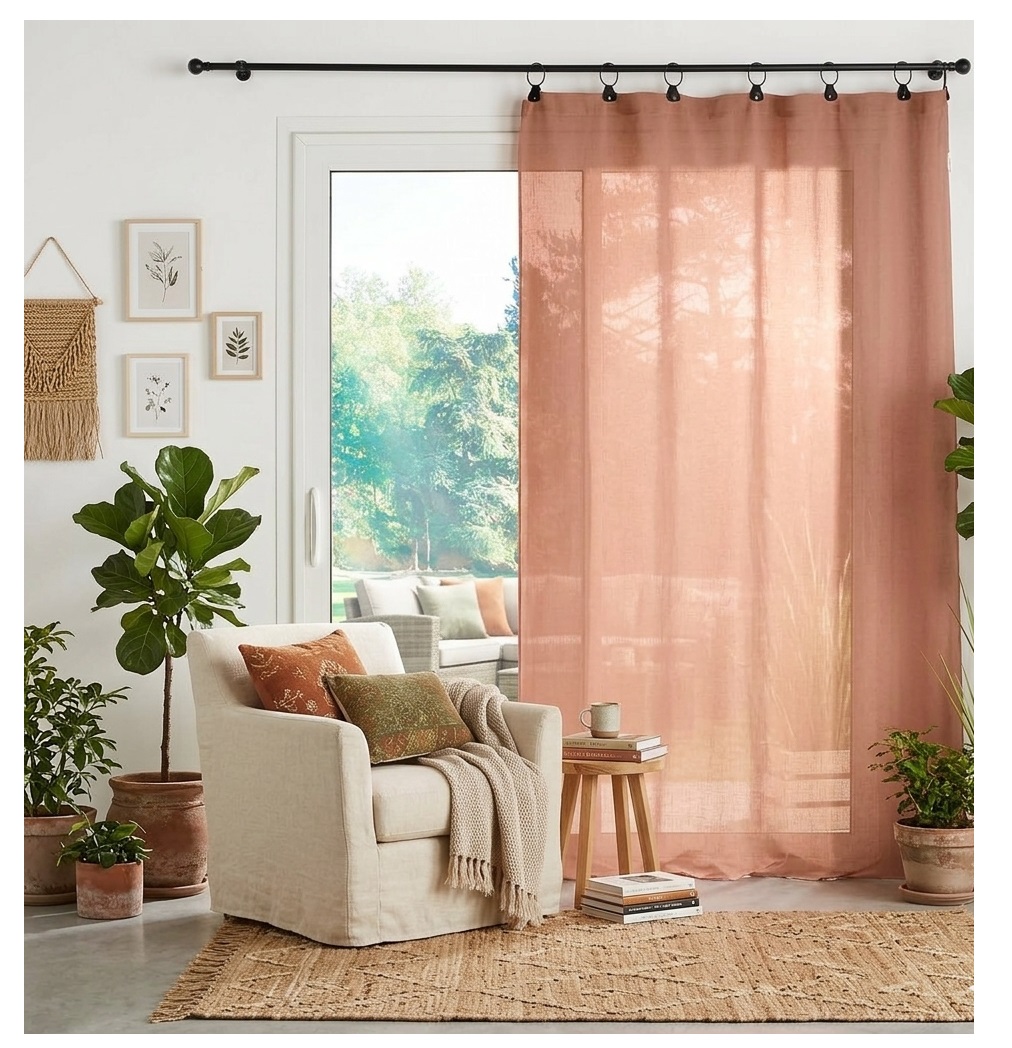 Sa finition à anneaux en métal noir assure une installation rapide et un tombé fluide pour un rendu décoratif soigné.