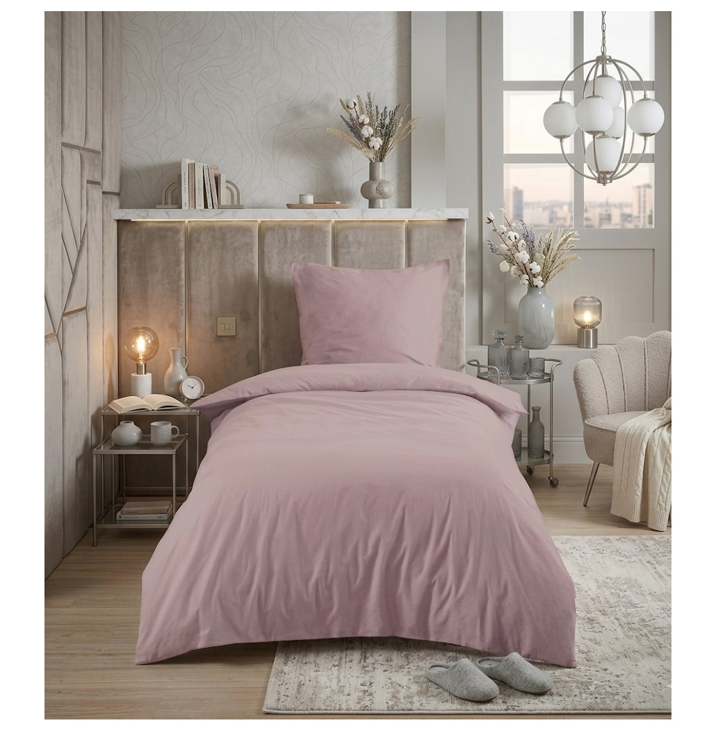 Caractéristiques : • Dimensions housse de couette : 140 x 200 cm • Taie d’oreiller : 63 x 63 cm (x1) • Coloris : rose • Matière : 100% polyester • Toucher doux et léger • Entretien facile • Style : moderne et cocooning • Idéal pour lit 2 personnes