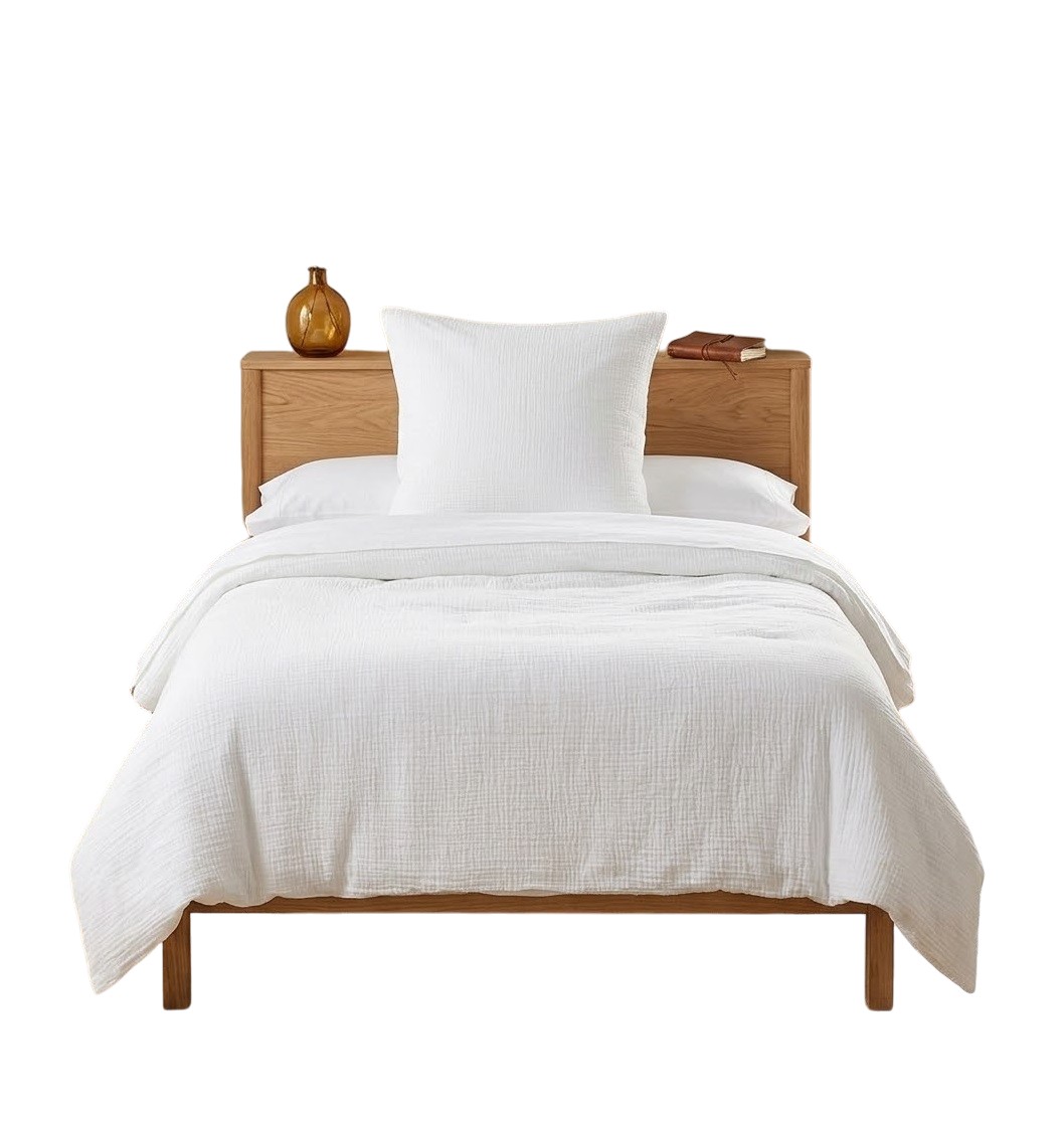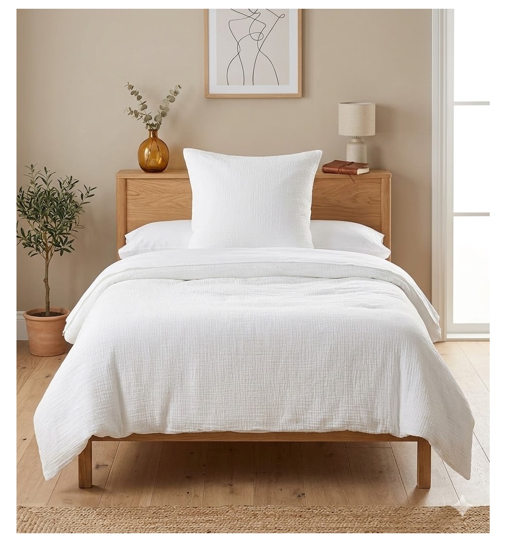 Apportez douceur et naturel à votre chambre avec cette parure de lit 140 x 200 cm en gaze de coton.