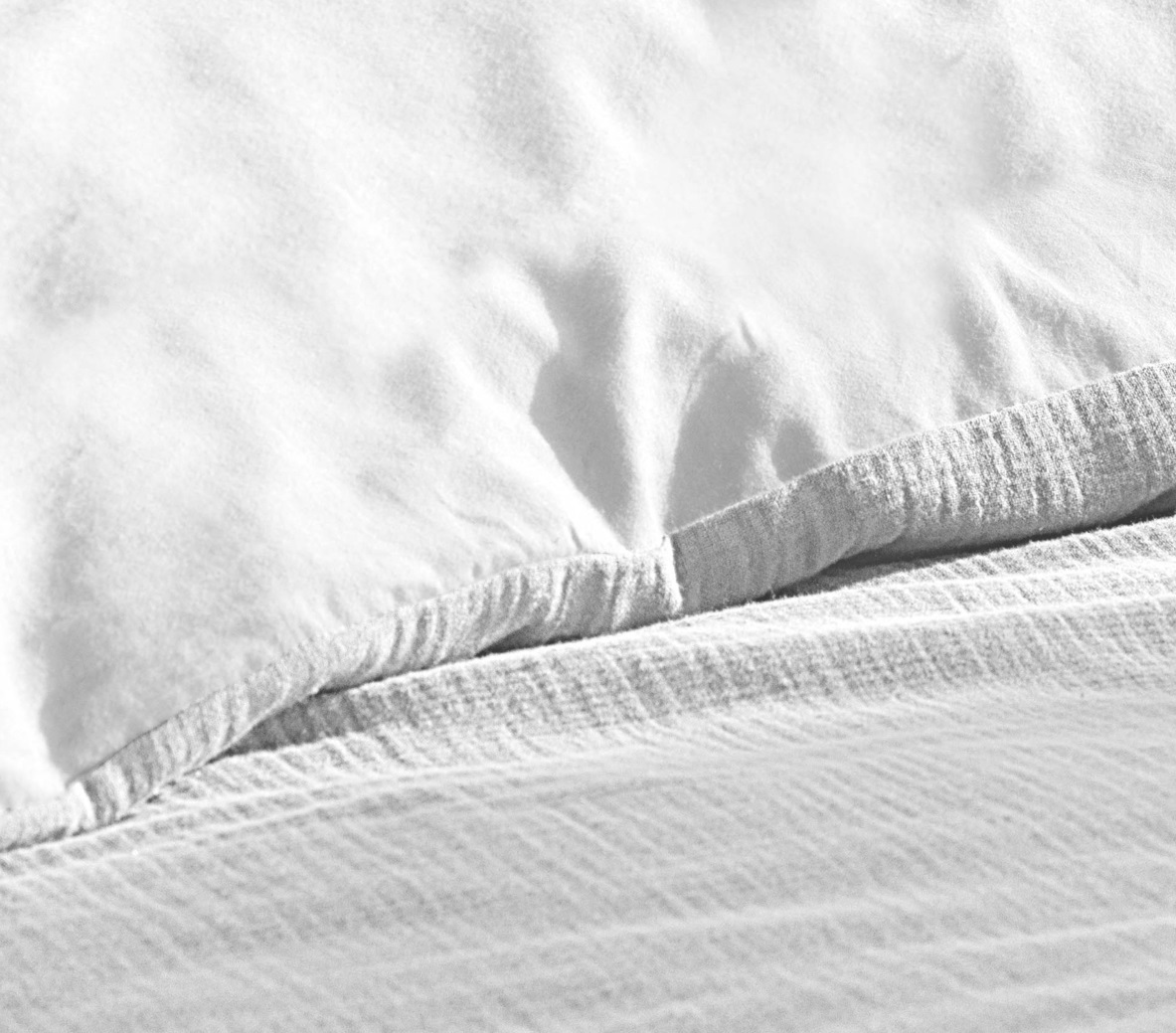 Grâce à son effet gaufré légèrement froissé, la gaze de coton offre un style moderne et une sensation de confort incomparable. Souple et respirante, elle est idéale pour des nuits agréables en toute saison.