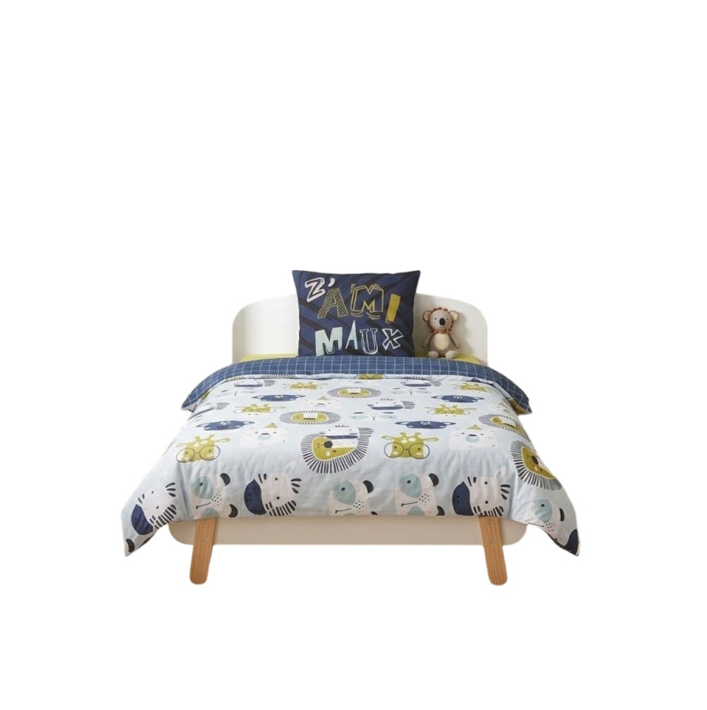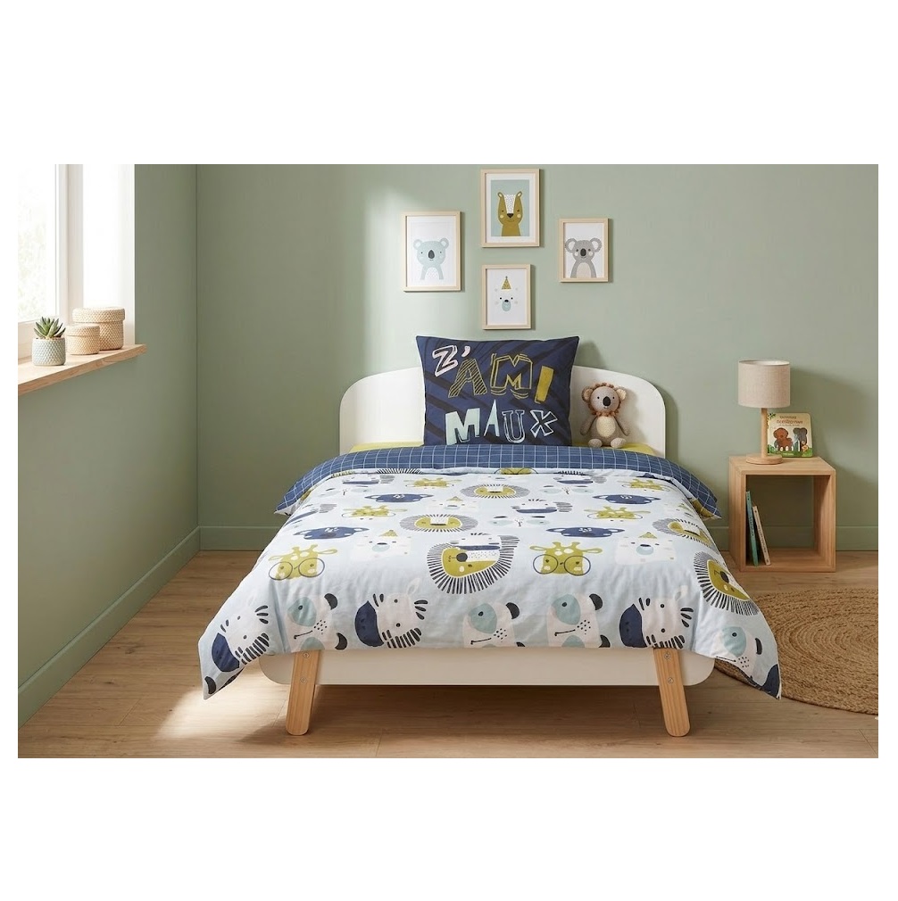Offrez une touche ludique et pleine de douceur à la chambre de votre enfant avec la parure de lit Lion et ses Amis 140 x 200 cm.