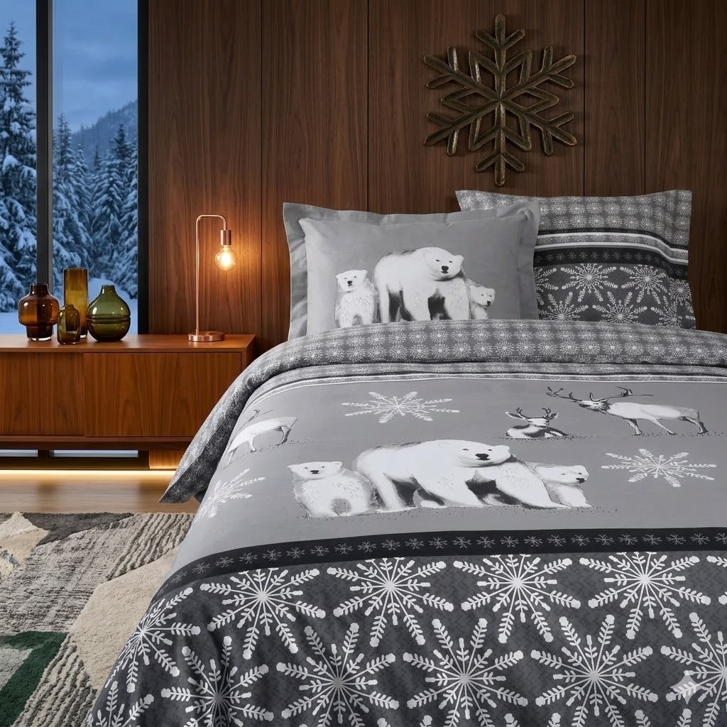 Passez de belles soirées d’hiver avec la parure de lit Aigueblanche 220 x 240 cm. Son style montagnard élégant et sa couleur gris apportent chaleur et charme à votre chambre.