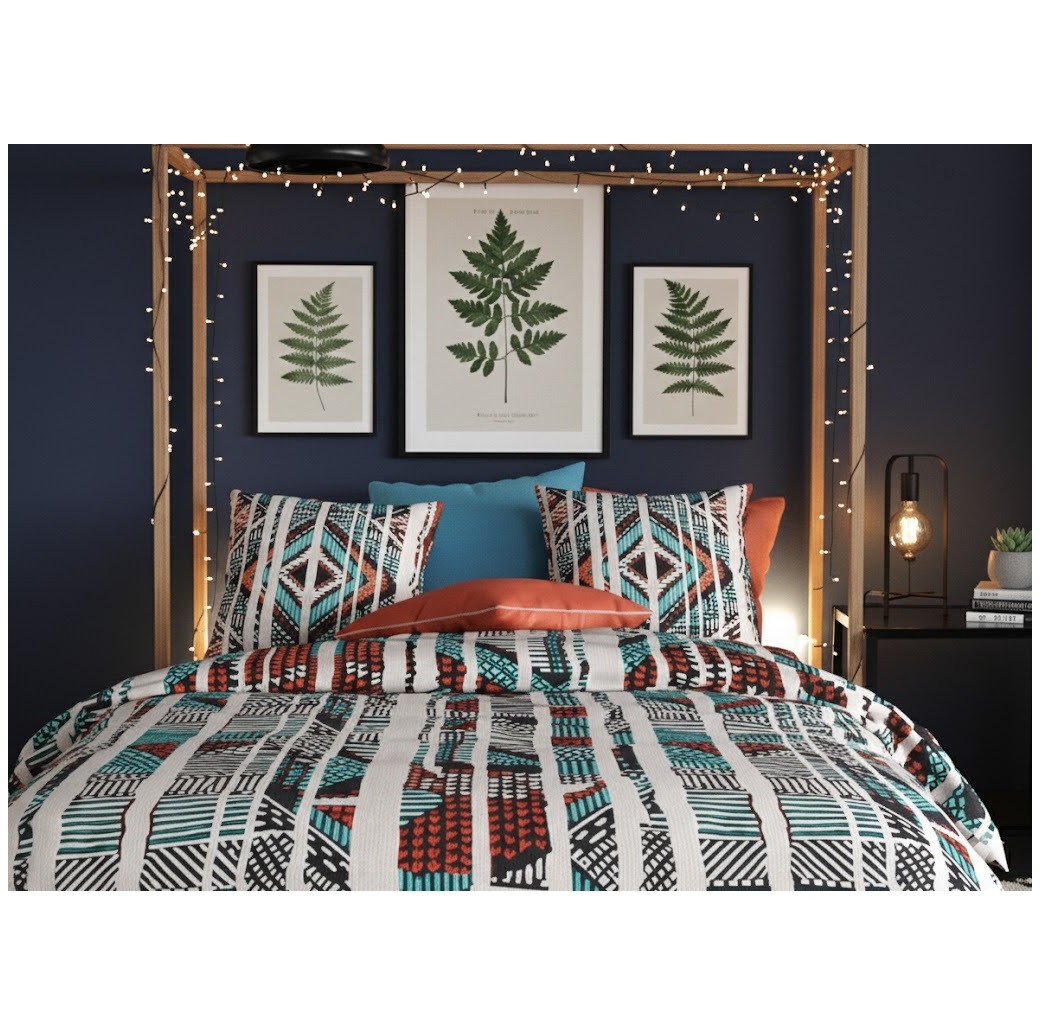Apportez du caractère à votre chambre avec la parure de lit Indiana 220x240 cm pour lit 2 personnes.