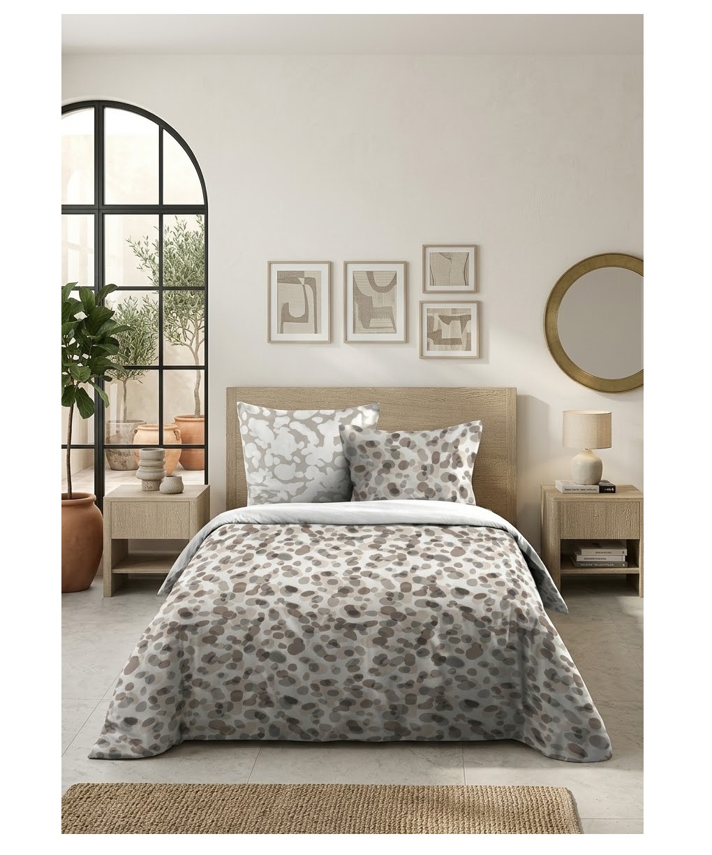 Cet ensemble comprend une housse de couette 220x240 cm et deux taies d’oreiller assorties, permettant de créer un lit harmonieux et élégant.