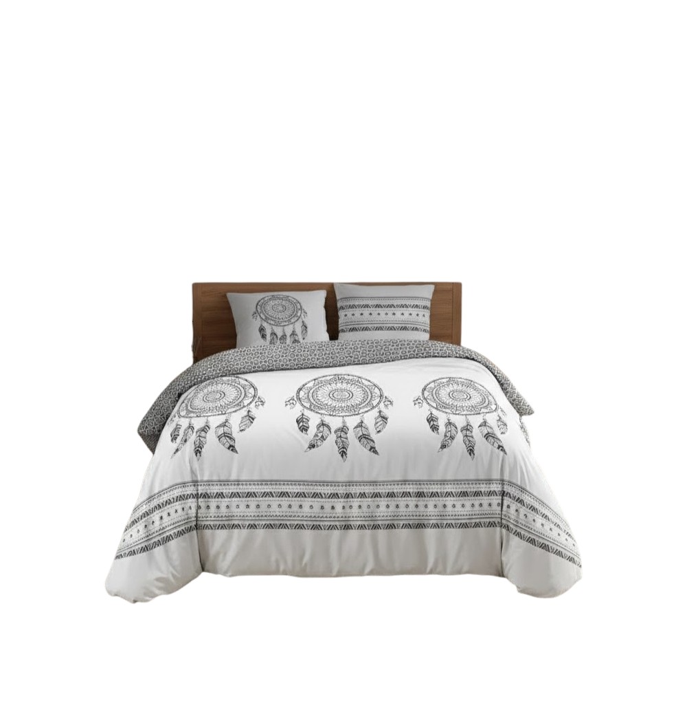 Réversible, elle présente un recto imprimé attrape-rêves et un verso à motif géométrique raffiné pour varier les styles selon vos envies.