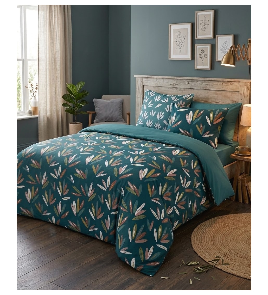 Parfaite pour un lit 2 personnes, cette parure comprend une housse de couette 240 x 220 cm ainsi que deux taies d’oreiller 63 x 63 cm assortie. Sa couleur bleu aux motifs automnaux apporte une touche décorative chaleureuse et moderne à votre literie.