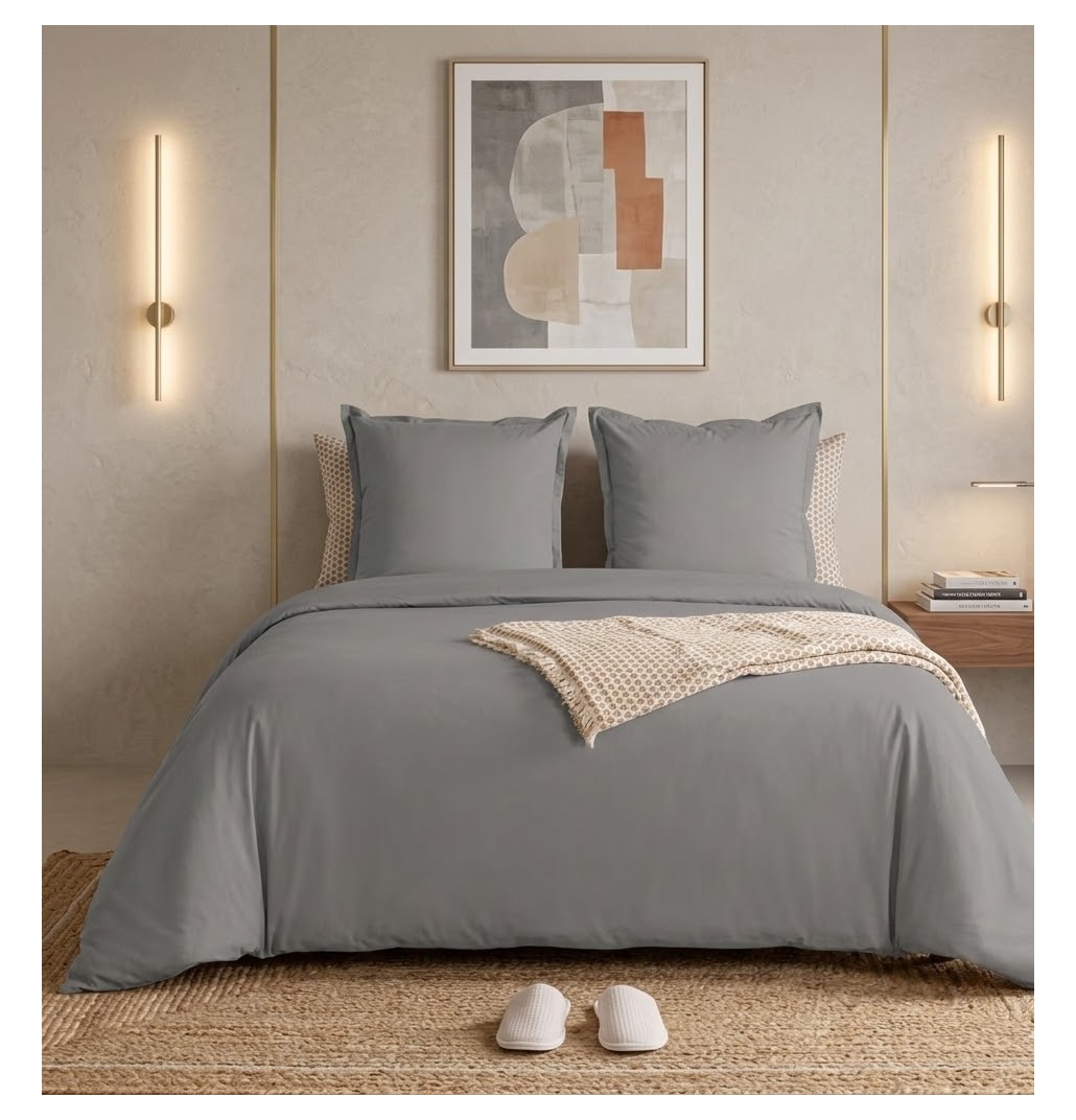 Apportez confort et élégance à votre chambre avec cette parure de lit 2 personnes en percale de coton 100%.