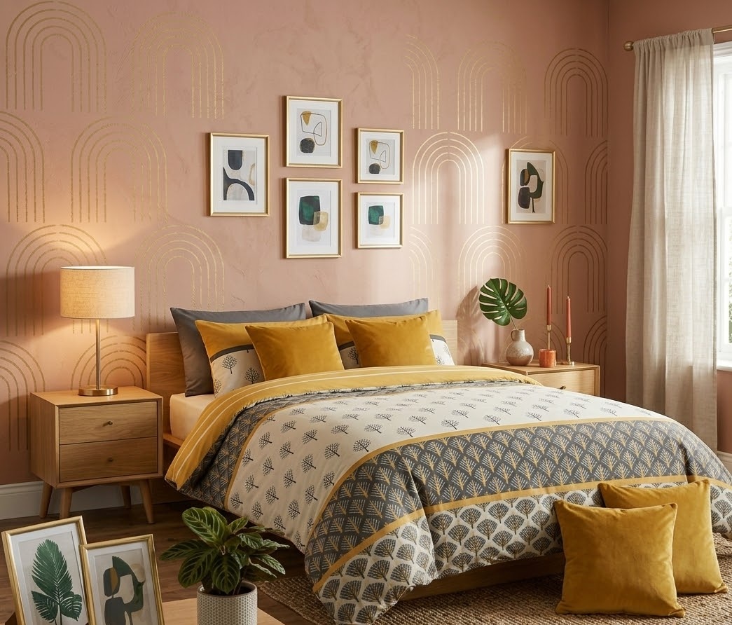 Son design graphique subtil associé à une teinte jaune chaleureuse apporte une touche moderne et lumineuse à votre espace nuit.