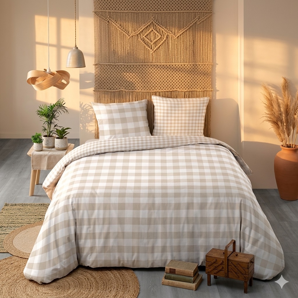 Apportez confort et élégance à votre chambre avec la parure de lit Victoire à carreaux.