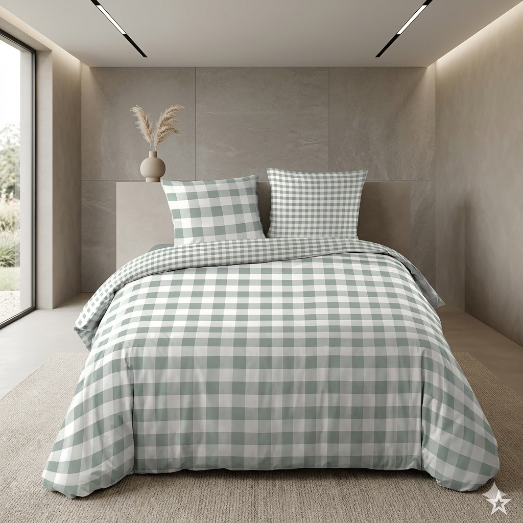 Apportez confort et élégance à votre chambre avec la parure de lit Victoire à carreaux.