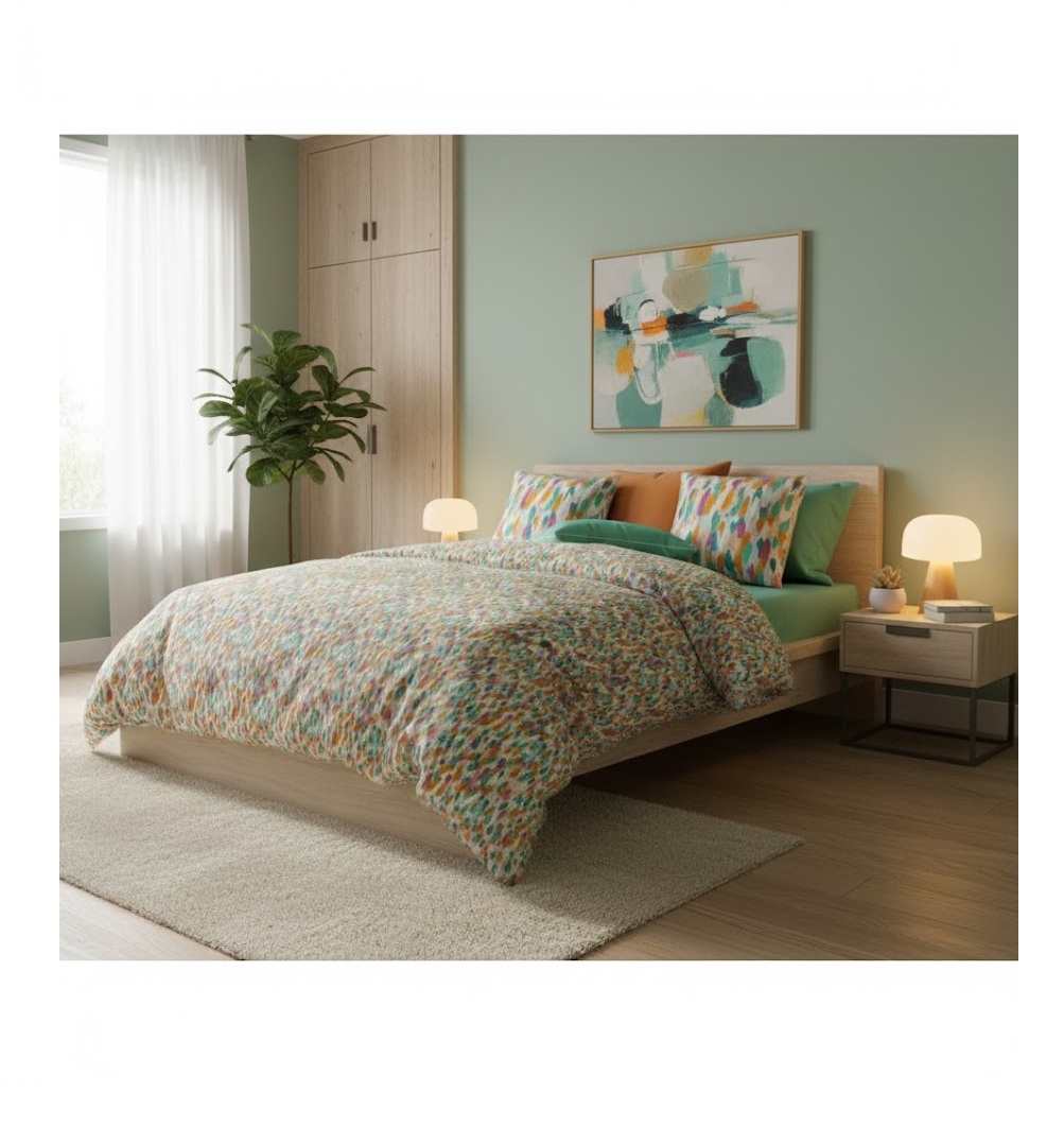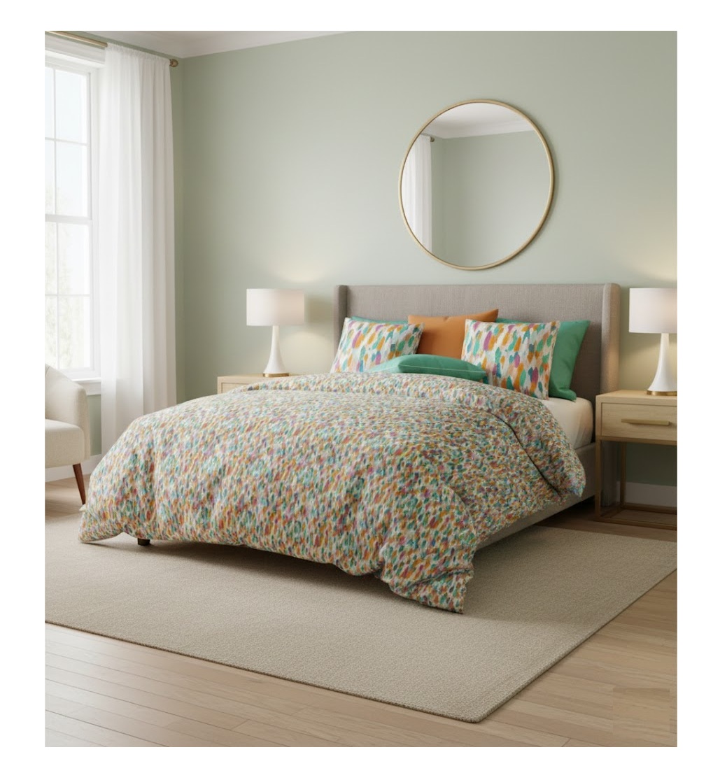 Apportez une touche de fraîcheur et de bonne humeur à votre chambre avec la parure de lit Confetti. Son motif multicolore, composé de petites touches graphiques dynamiques, crée une atmosphère joyeuse et contemporaine, idéale pour réveiller la décoration tout en conservant une belle harmonie visuelle.