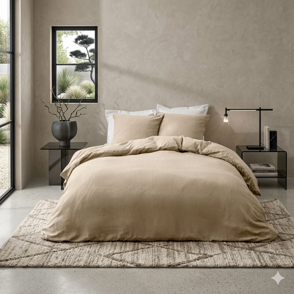 Son tissu à effet relief et sa teinte unie créent une ambiance chaleureuse et raffinée, idéale pour une décoration naturelle et apaisante.