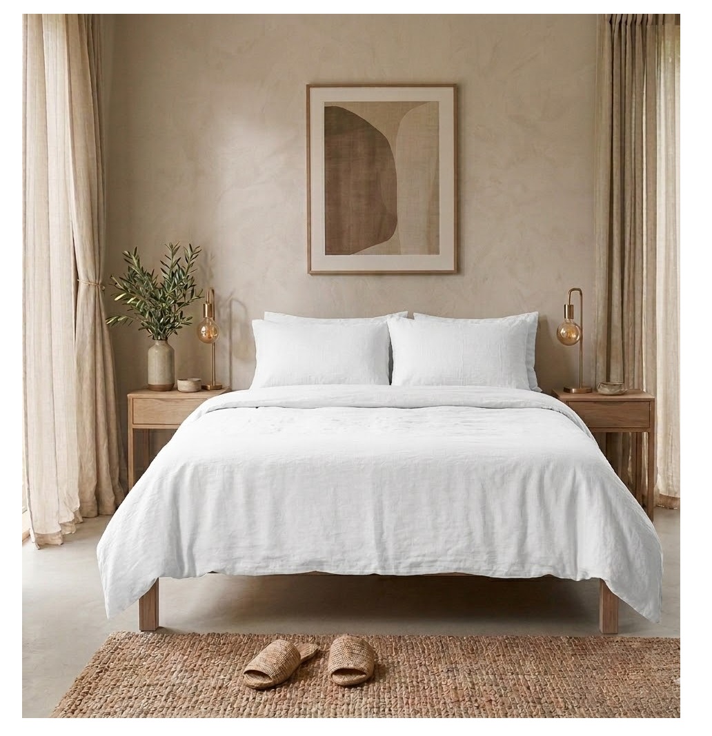 Apportez une touche douce et naturelle à votre chambre avec la parure de lit Floria 260 x 240 cm en double gaze de coton.