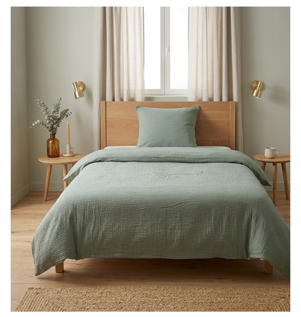 Apportez confort et style à votre chambre avec cette housse de couette en gaze de coton 100%.