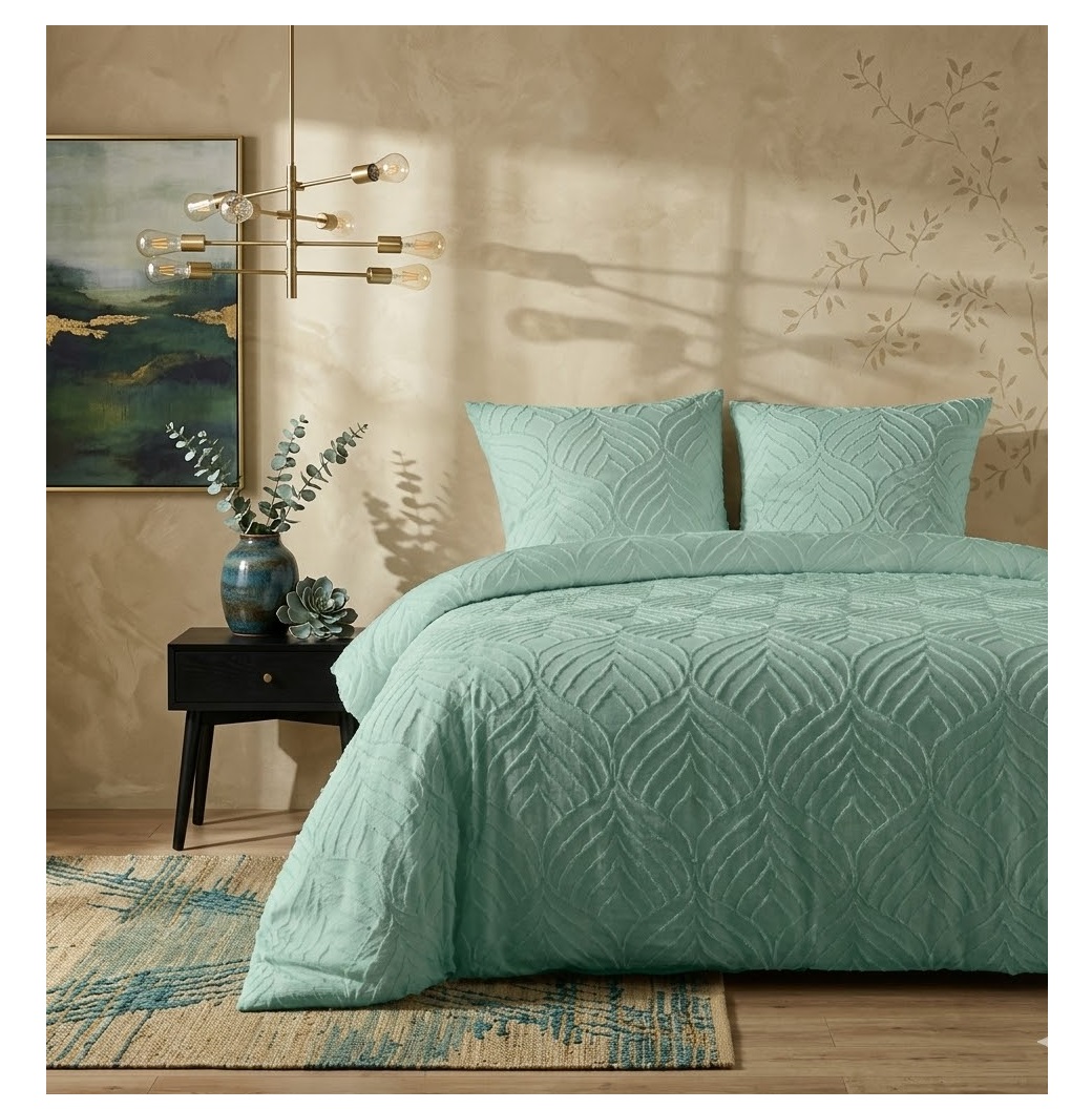 Apportez une touche de charme et d’élégance à votre chambre avec cette parure de lit verte en microfibre tuftée 260 x 240 cm, idéale pour un lit 2 personnes.