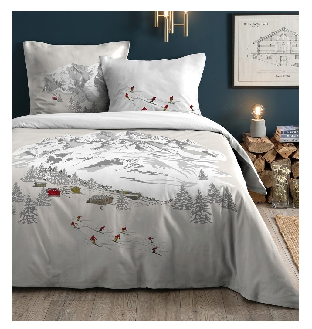 Offrez à votre chambre un style montagnard authentique avec la parure de lit en percale de coton “Station Meribel”.