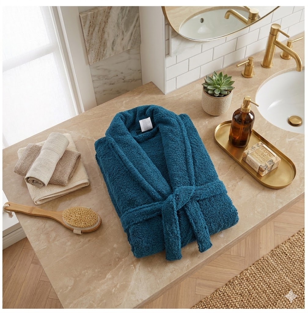 Les accessoires présents sur le visuel ne sont pas vendus avec le peignoir.