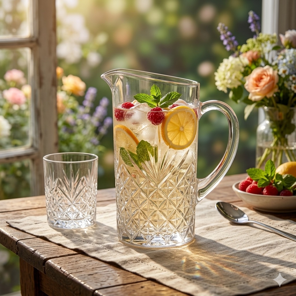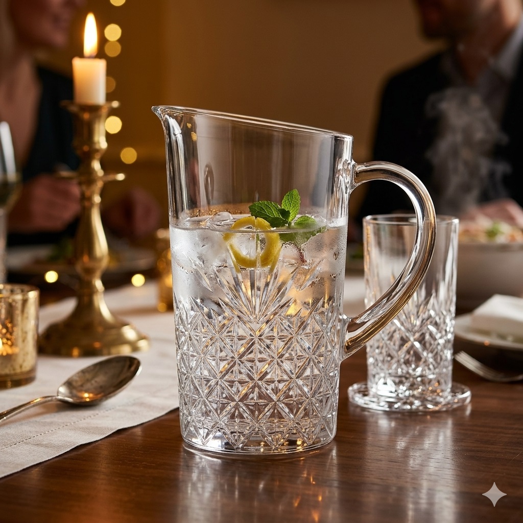 Apportez une touche d’élégance intemporelle à votre table avec ce pichet en verre au design classique et raffiné, parfait pour toutes les occasions du quotidien ou les repas entre amis.