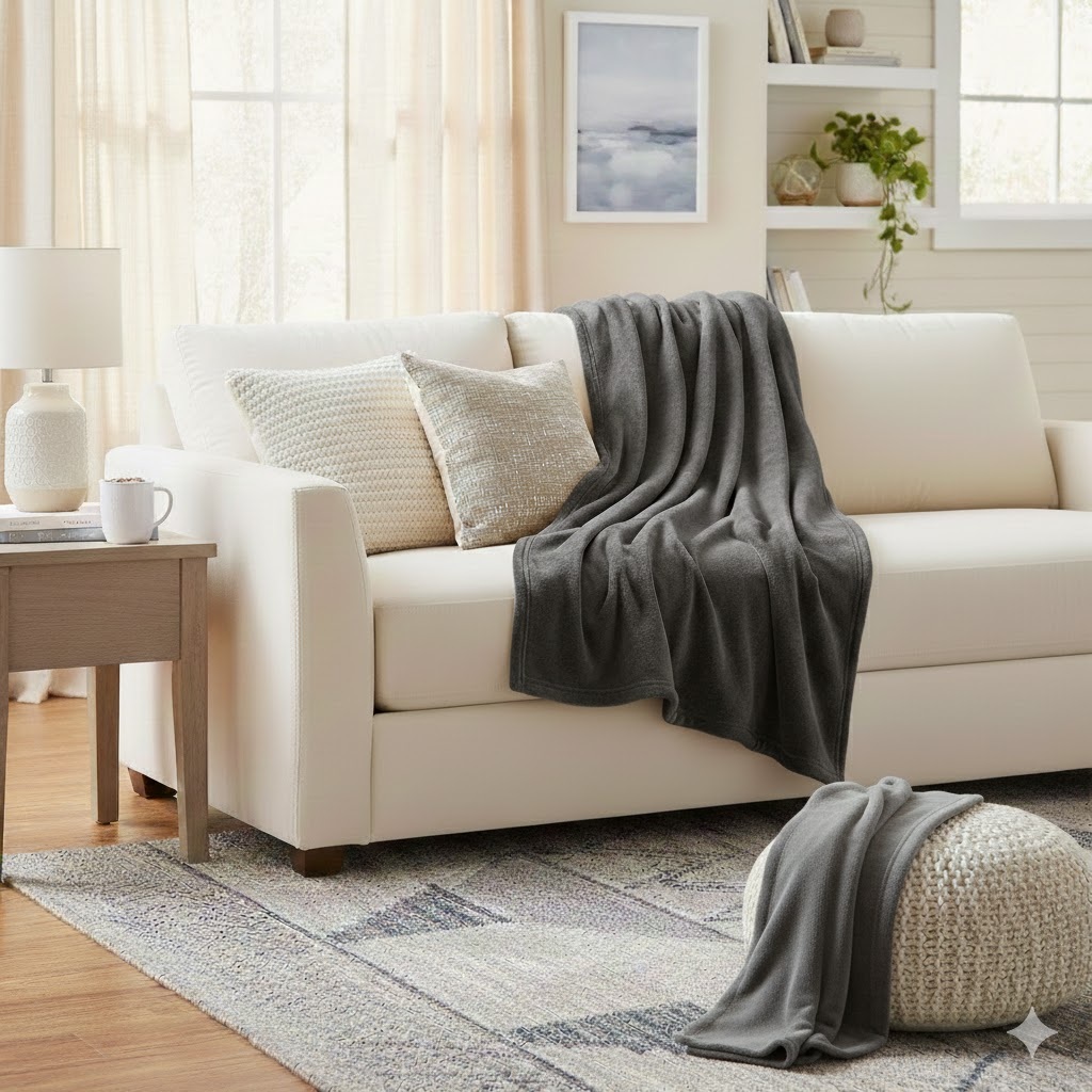 Confectionné en 100 % polyester flanelle, ce plaid offre chaleur et légèreté pour un usage quotidien. Sa finition avec ourlet assure une belle tenue et une durabilité optimale. Disponible en plusieurs coloris et en deux dimensions (130 x 180 cm ou 180 x 230 cm), il s’adapte facilement à tous vos besoins, que ce soit comme couverture d’appoint ou élément décoratif.
