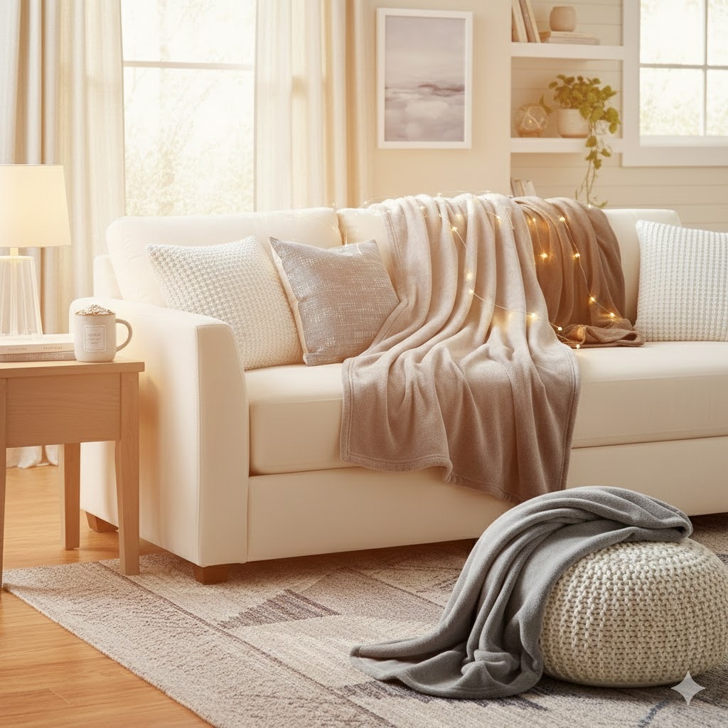 Confectionné en 100 % polyester flanelle, ce plaid offre chaleur et légèreté pour un usage quotidien. Sa finition avec ourlet assure une belle tenue et une durabilité optimale. Disponible en plusieurs coloris et en deux dimensions (130 x 180 cm ou 180 x 230 cm), il s’adapte facilement à tous vos besoins, que ce soit comme couverture d’appoint ou élément décoratif.