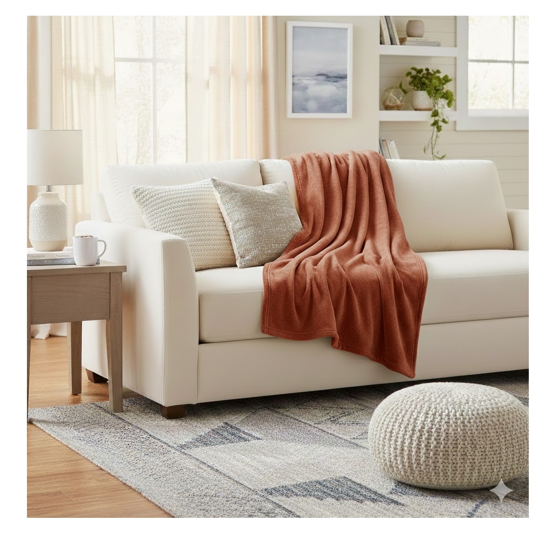 Les accessoires présents sur le visuel ne sont pas vendus avec le plaid.