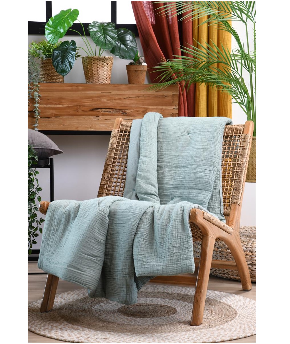 Plaid ou Edredon en gaze de coton 125 x 150 cm Colors vert sauge