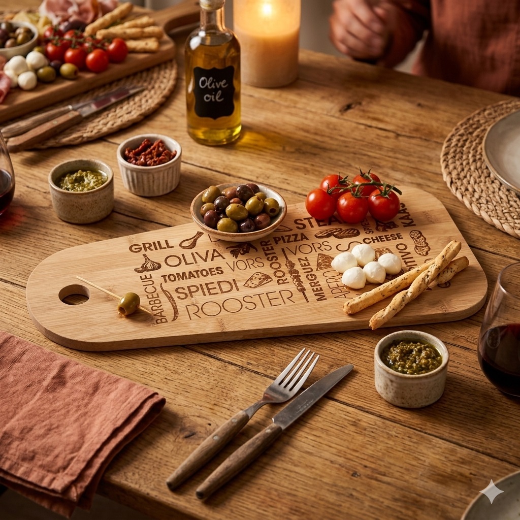 ✔ Gravure décorative : mots gourmands (Tapas, Barbecue, Grill…)