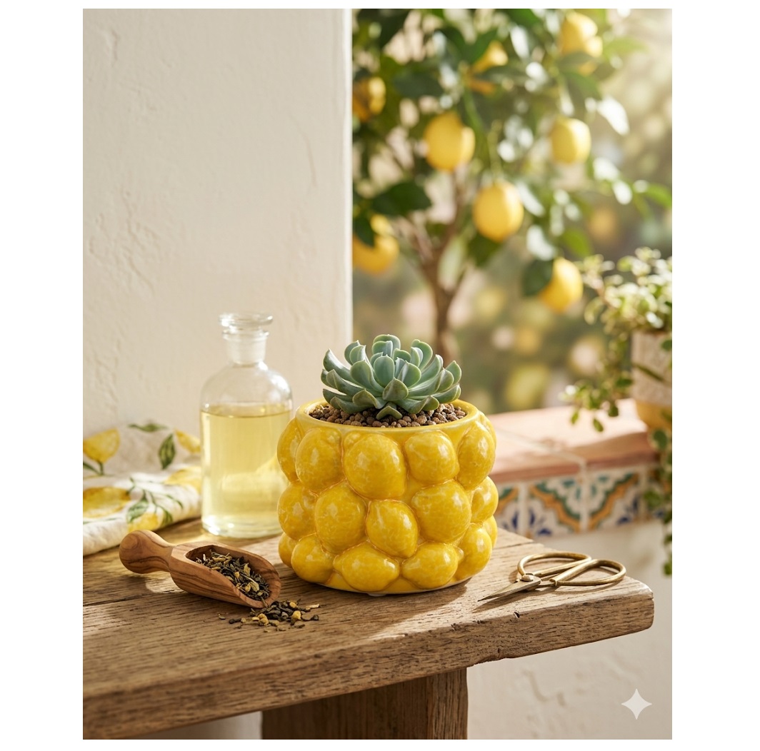 Apportez une touche fraîche et originale à votre décoration avec ce pot de fleurs citron en céramique !
