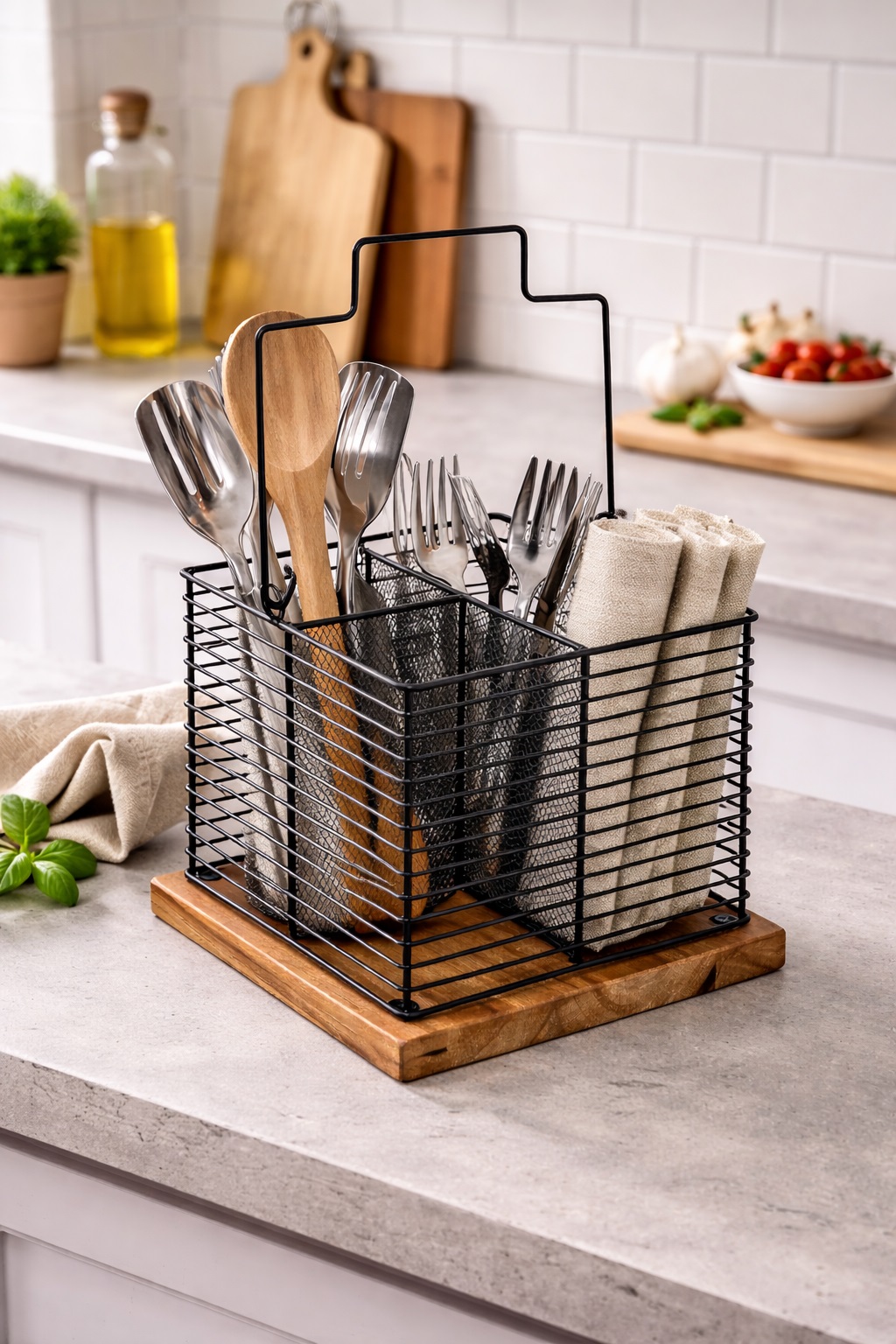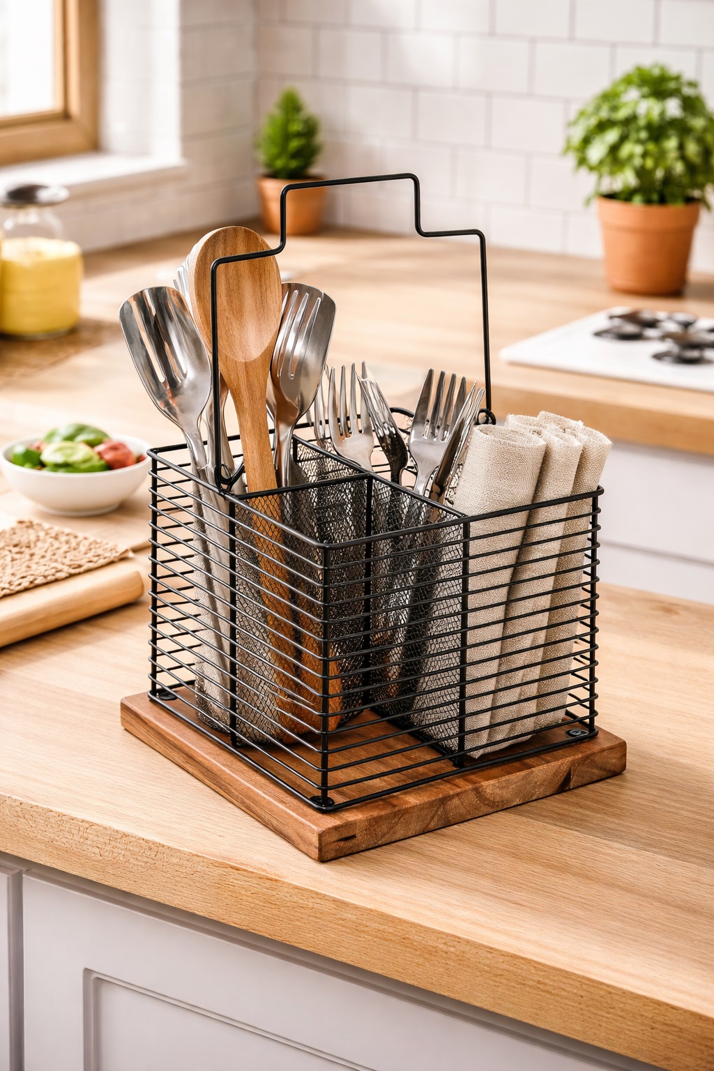 Idéal pour organiser vos couverts, ustensiles ou même vos serviettes, il apporte une touche moderne et naturelle à votre cuisine.