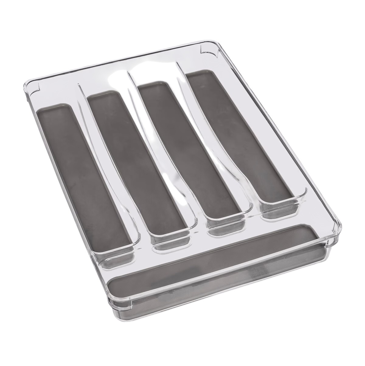 Caractéristiques : • Dimensions : 32,5 x 23 cm • Matière : PVC résistant • Couleur : transparent • 5 compartiments de rangement • Bandes antidérapantes intégrées • Stable et facile à nettoyer • Idéal pour tiroirs de cuisine