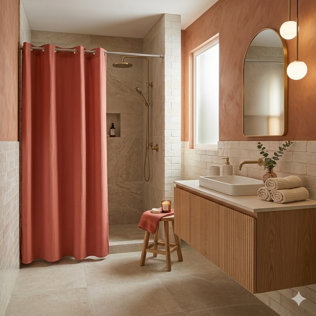 Rideau de douche clipsable 180 x 200 cm Dotty terracotta