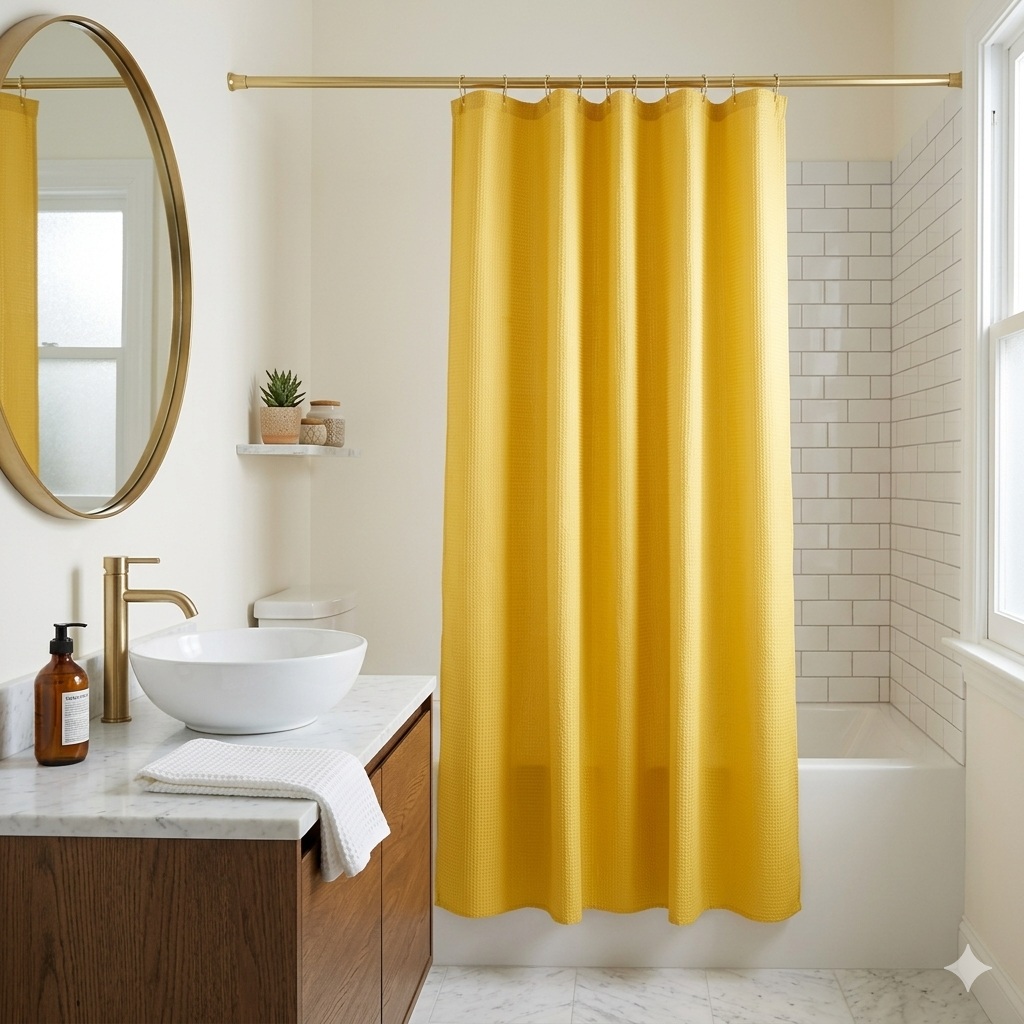 ✔️ Les + produit : Motif jacquard effet quartz discret et élégant Coloris blanc intemporel Dimensions : 180 x 200 cm Livré avec crochets en plastique blanc Résistant à l’humidité Séchage rapide 🧼 Entretien : Lavable en machine à 30° Séchage rapide à l’air libre