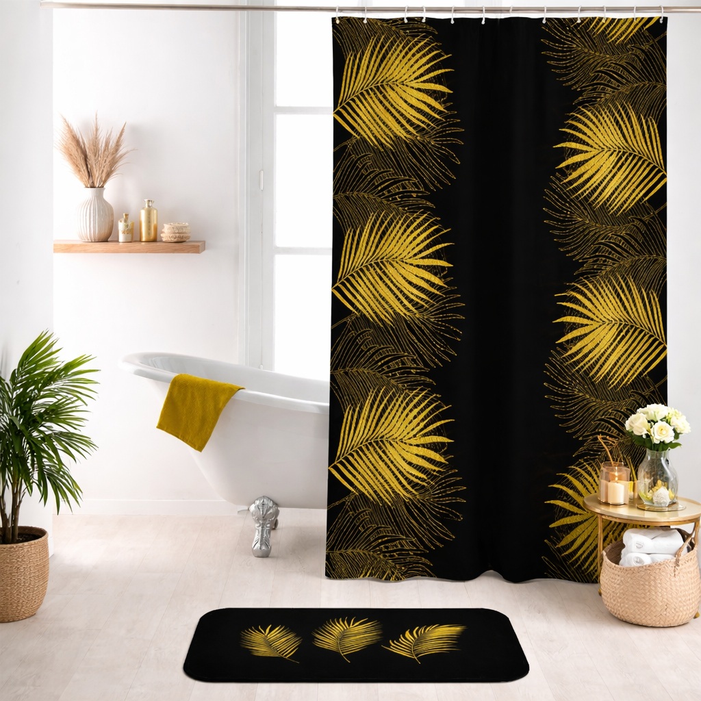 Rideau de douche motif feuilles – Stop aux éclaboussures avec style 🌿