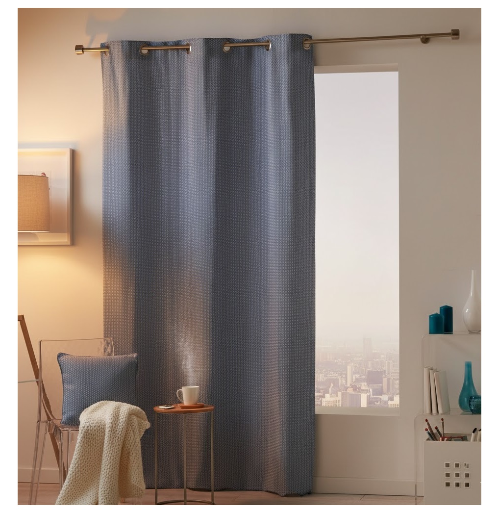 Prêt-à-poser, ce rideau s’installe rapidement et en toute simplicité. Il est doté de 8 œillets ronds coloris argent, avec bande de renfort, assurant une excellente tenue et une glisse fluide sur la tringle. Confectionné en 100 % coton, il offre un toucher doux et agréable, tout en garantissant un tombé naturel et de qualité.