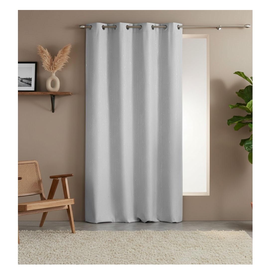 Apportez une touche chic et lumineuse à votre intérieur avec le rideau à œillets Filliane. Son design raffiné, sublimé par de délicats motifs de filaments verticaux argentés sur fond uni, crée une ambiance élégante et accueillante dans le salon, la chambre ou la salle à manger.