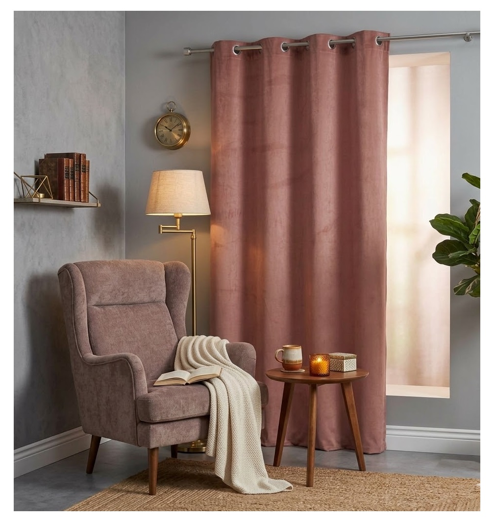 Conçu en 100% polyester effet velours, ce rideau est à la fois résistant, doux au toucher et simple à entretenir.