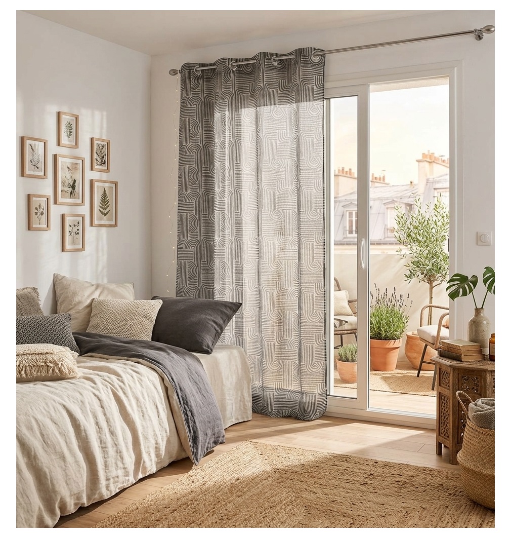 Rideau voile sable Pandore, idéal pour habiller vos fenêtres avec élégance et légèreté.