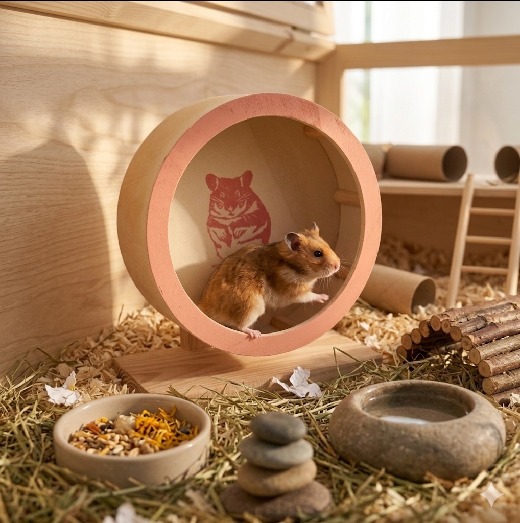 Offrez à votre hamster une roue d’exercice en bois Danco, idéale pour répondre à son besoin naturel d’activité.