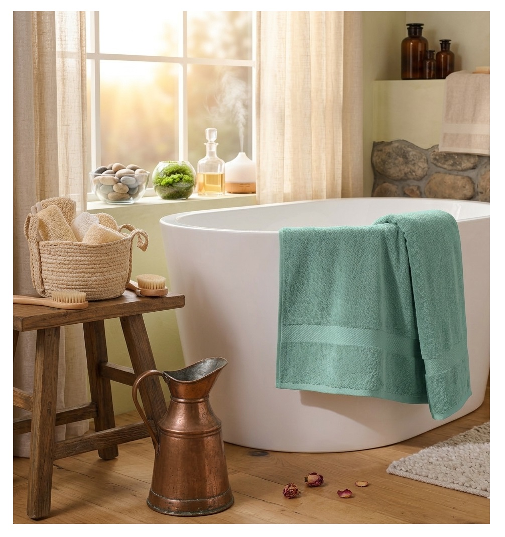 • Dimensions : 90 x 150 cm • Matière : 100 % coton • Grammage : 600 g/m² (épais et très absorbant) • Coloris : celadon • Certification : Oeko-Tex® (sans substances nocives)