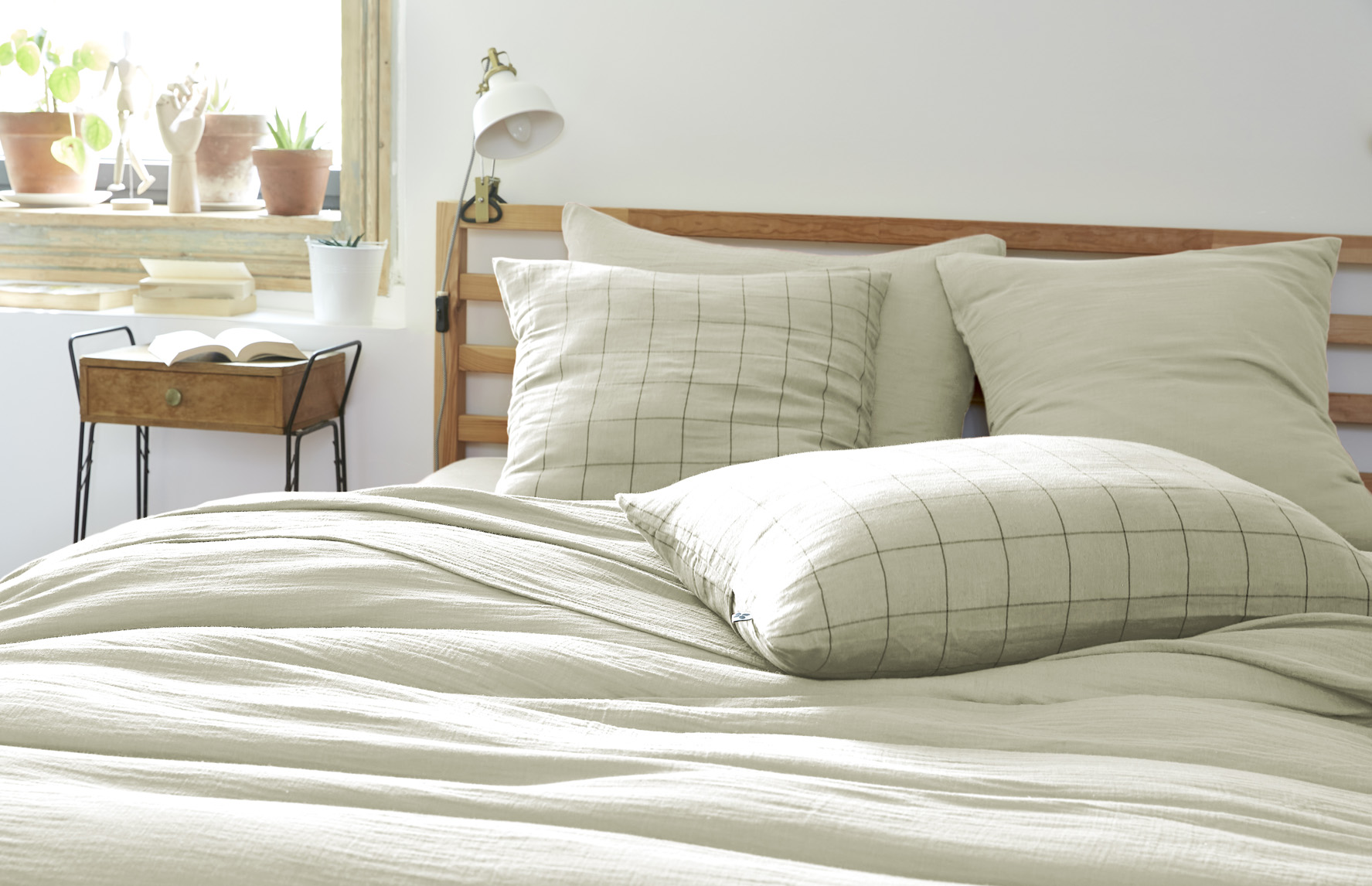 Confectionnée en gaze de coton 100 % (125 g/m²), cette taie offre une texture légère, douce et naturellement froissée, qui devient encore plus souple au fil des lavages.