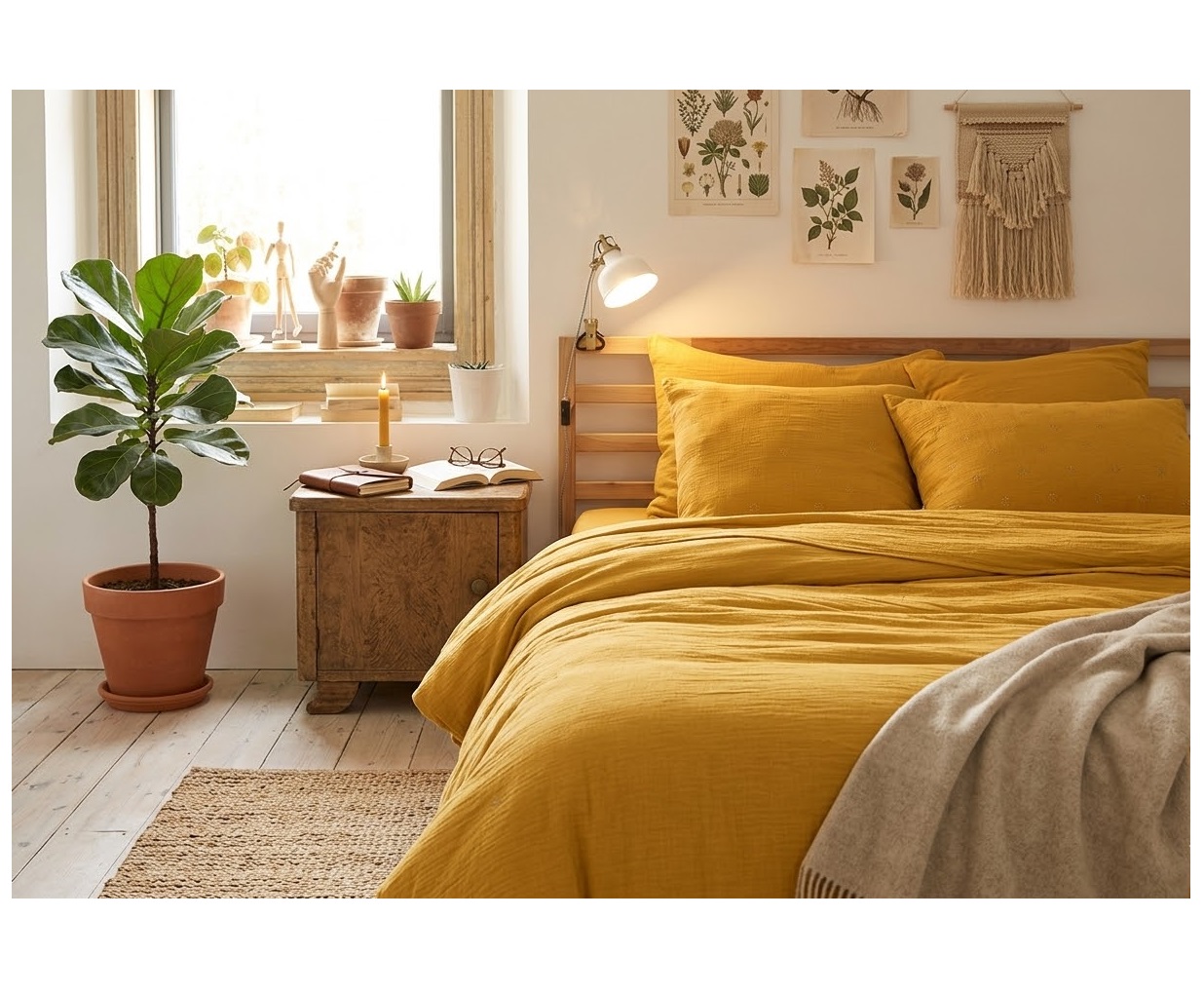 Apportez douceur et style à votre chambre avec la taie d’oreiller Gaia Boho en gaze de coton 60x60 cm.