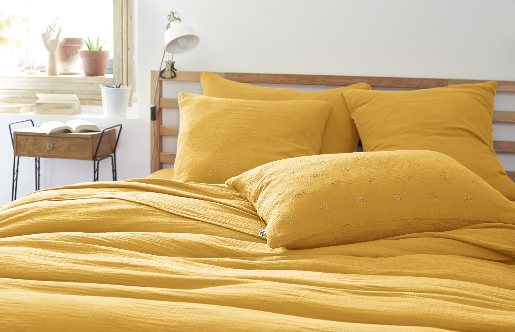 Son ouverture portefeuille avec rabat maintient parfaitement l’oreiller, tandis que ses broderies anglaises apportent une touche élégante et bohème.