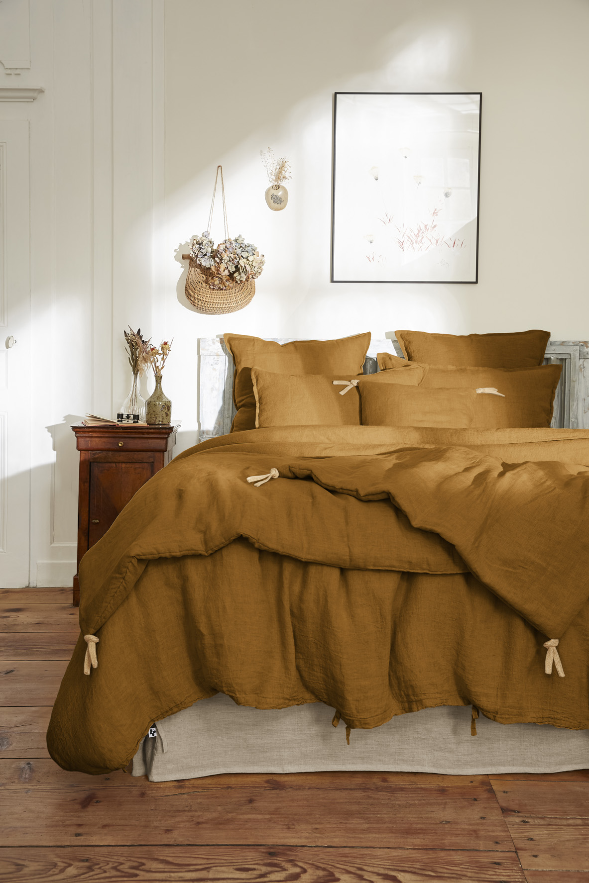 En lin lavé : La technique “linge de lit lavé” offre une souplesse et une douceur maximales. Ce lavage pendant la fabrication donne au linge un aspect légèrement froissé hyper tendance. Plus besoin de la repasser ! Le lin lavé est frais et confortable. Vous apprécierez son style élégant qui apportera une touche d’exception à votre décoration intérieure.