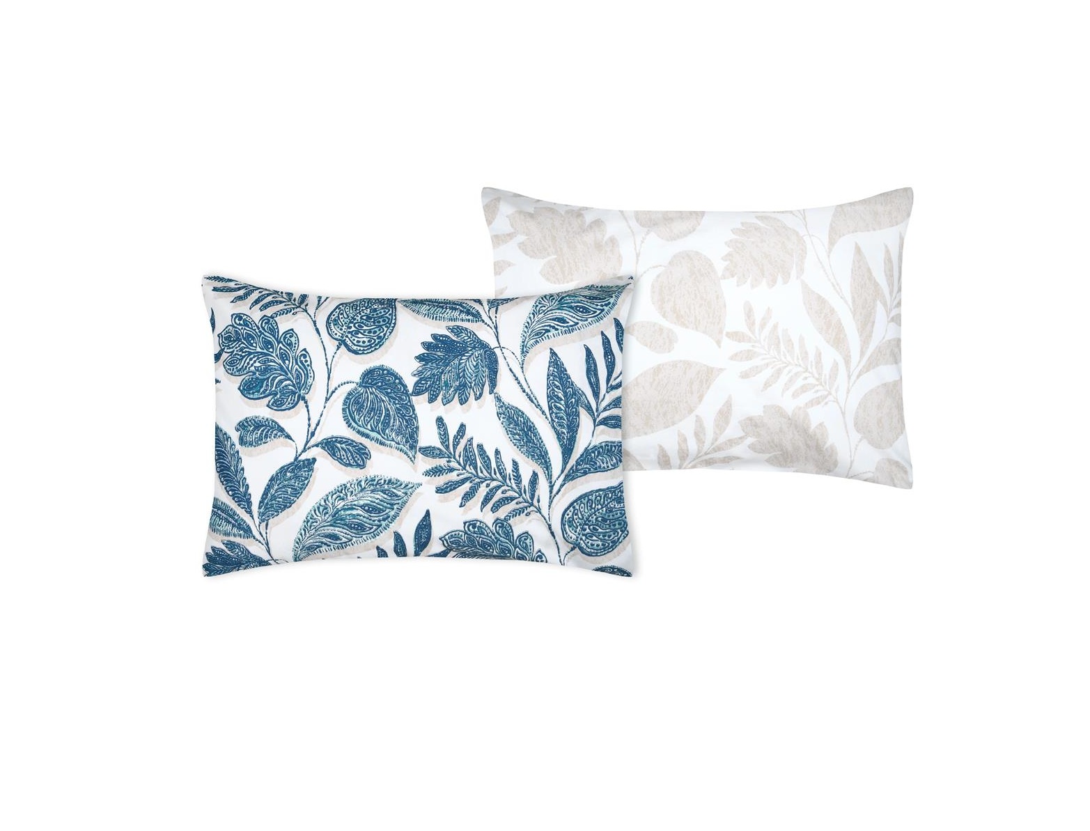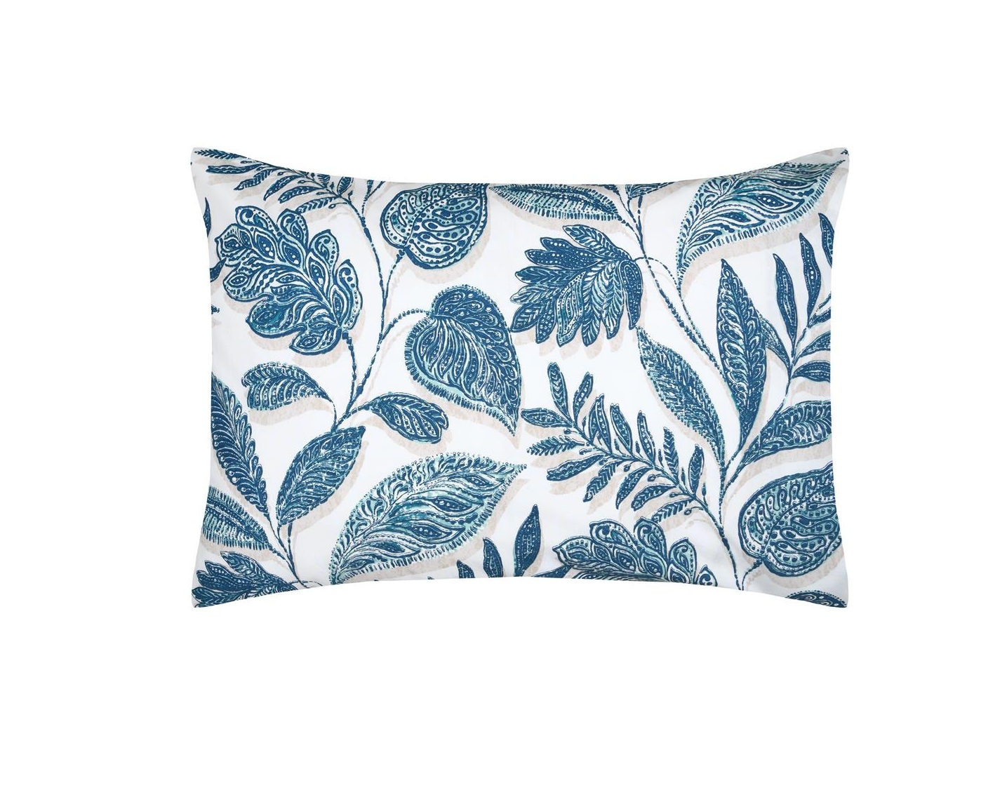 Caractéristiques : • Dimensions :50x70cm • Matière : 100% percale de coton • Couleur : bleu blanc • Motif : feuillage • Vendue à l’unité image recto verso
