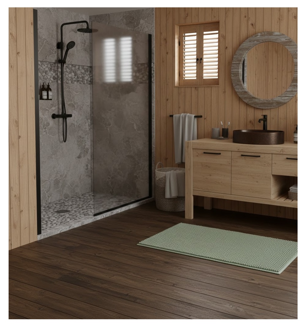 Son format 45 x 75 cm est idéal pour habiller l’espace devant une baignoire ou une double vasque. Absorbant et agréable au quotidien, il combine style et praticité. Sa teinte apporte une ambiance douce et cosy à votre décoration.