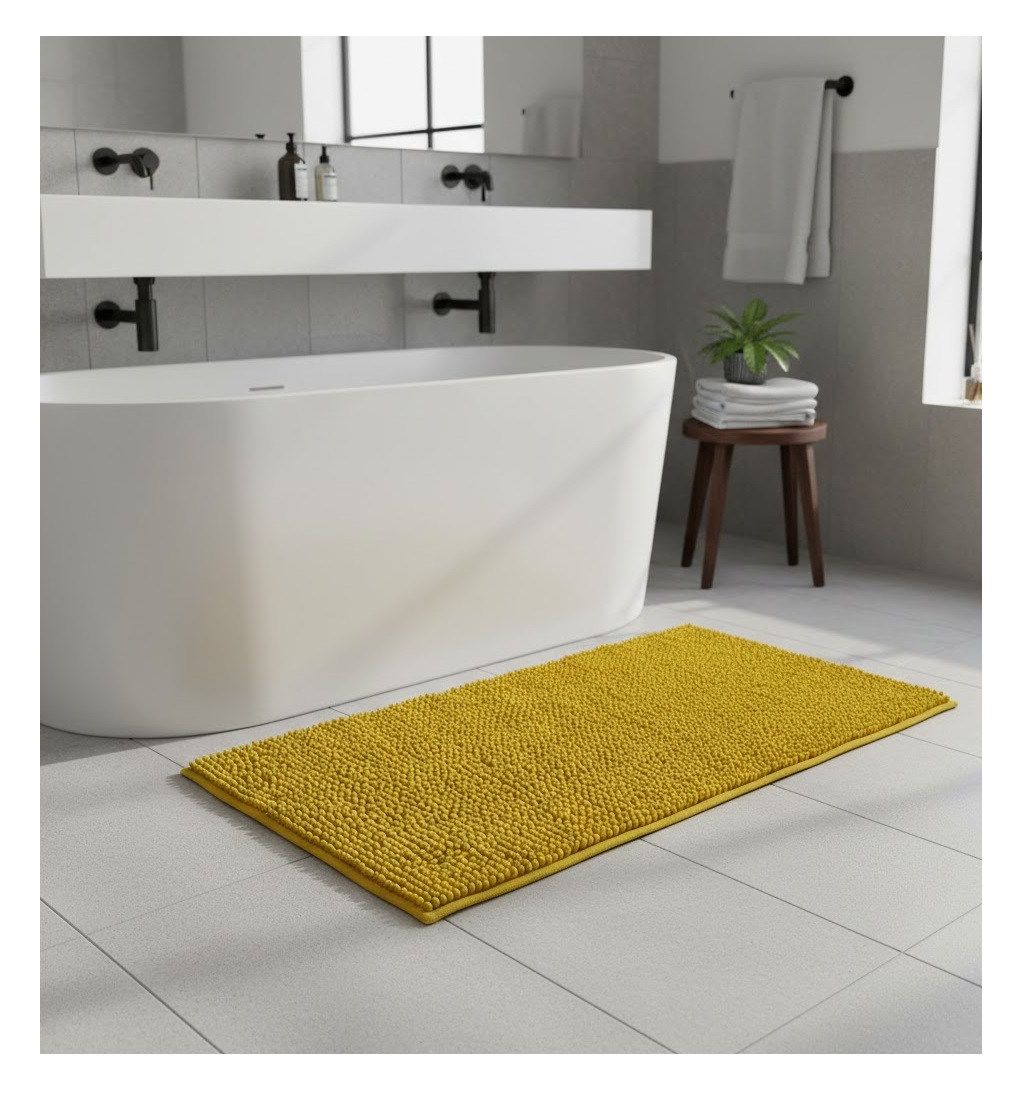Son grand format 50 x 120 cm est idéal pour habiller l’espace devant une baignoire ou une double vasque. Absorbant et agréable au quotidien, il combine style et praticité. Sa teinte apporte une ambiance douce et cosy à votre décoration.