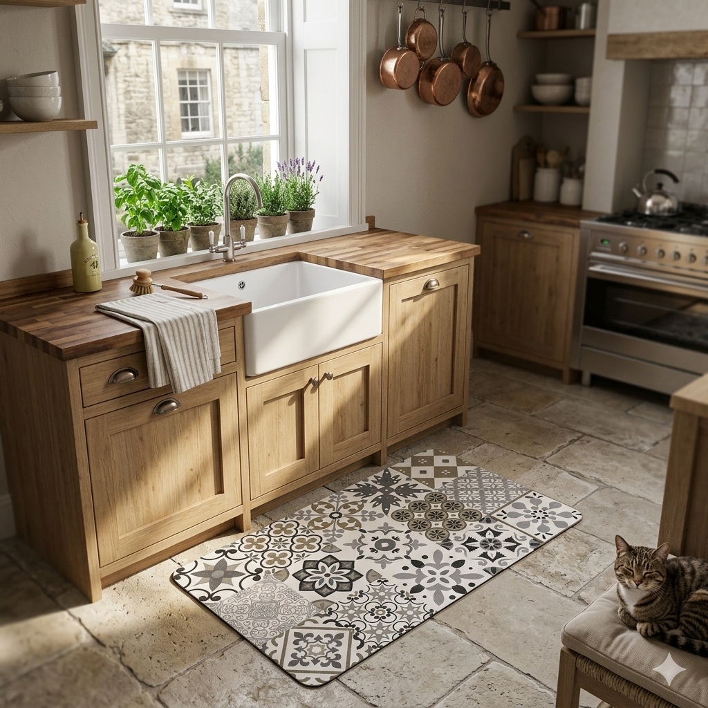 Idéal à placer devant l’évier, le plan de travail ou la zone de cuisson, ce tapis protège votre sol tout en apportant confort et style au quotidien. Sa mousse PVC antidérapante permet une bonne adhérence au sol pour plus de stabilité pendant vos activités en cuisine.