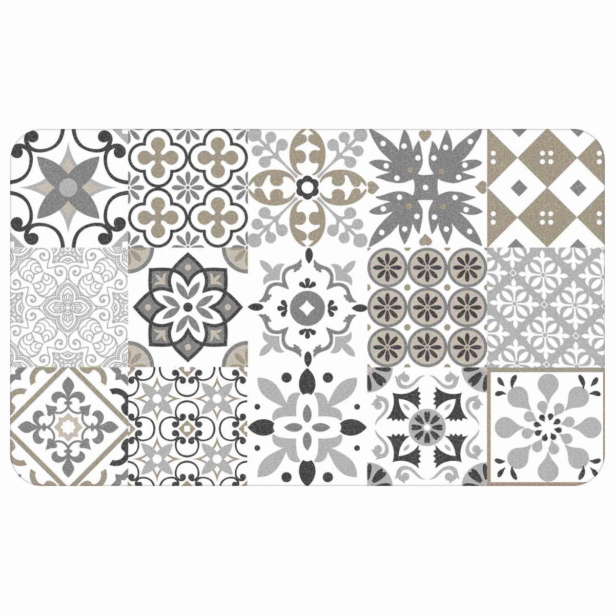 Tapis de cuisine décoratif motif carreaux 45 x 75 cm gris