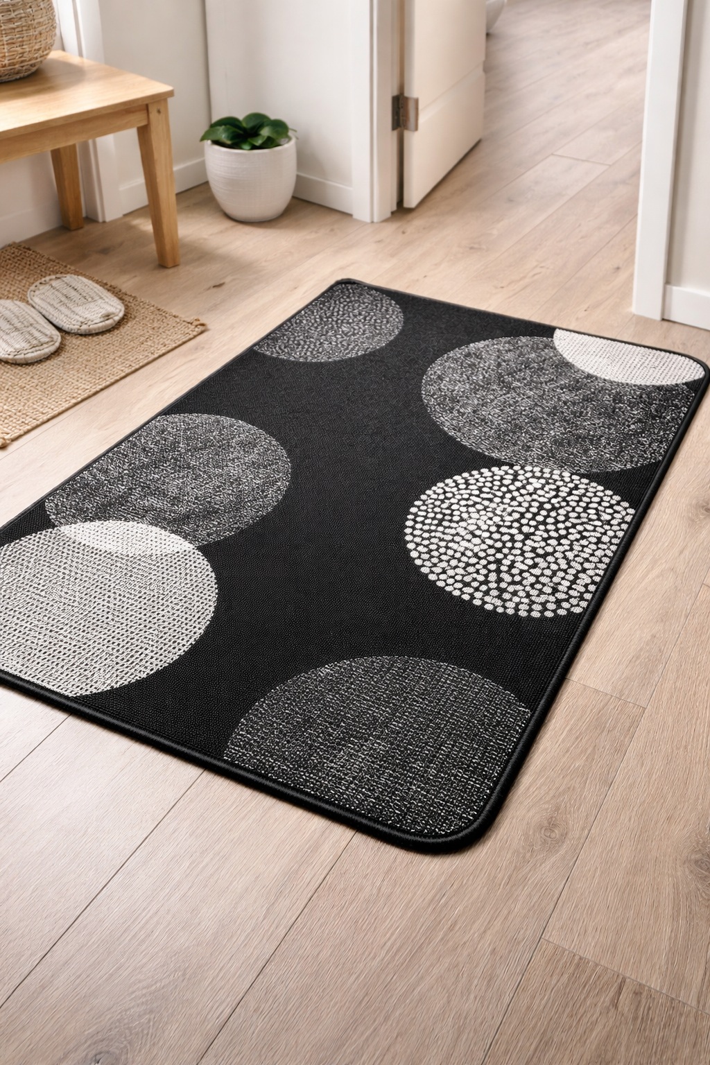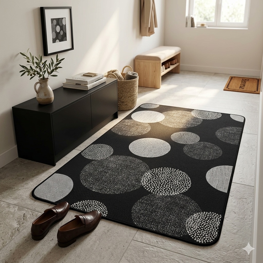 Un tapis à la fois pratique et décoratif, idéal pour protéger vos sols tout en apportant une touche moderne à votre intérieur.